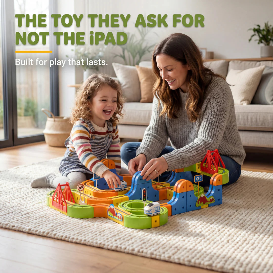 Every track is a new challenge. Kids experiment with loops, bridges, and turns while learning cause-and-effect, spatial thinking, and basic STEM concepts — without even realizing they’re learning.